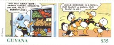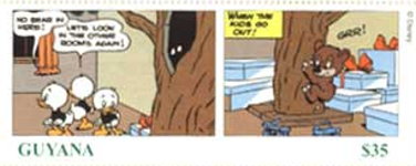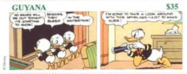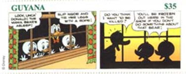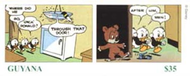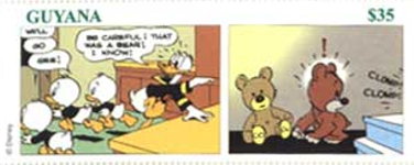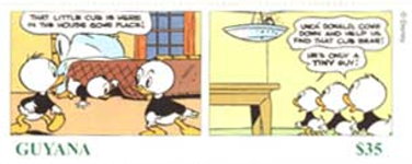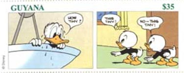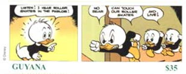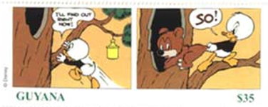 1000-cedi stamp depicts Huey, Dewey, and Louie;