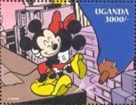 1000-cedi stamp depicts Minnie Mouse;